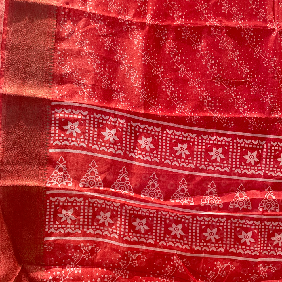 Red Cotton Silk Saree with All-Over Print & Golden Zari Border