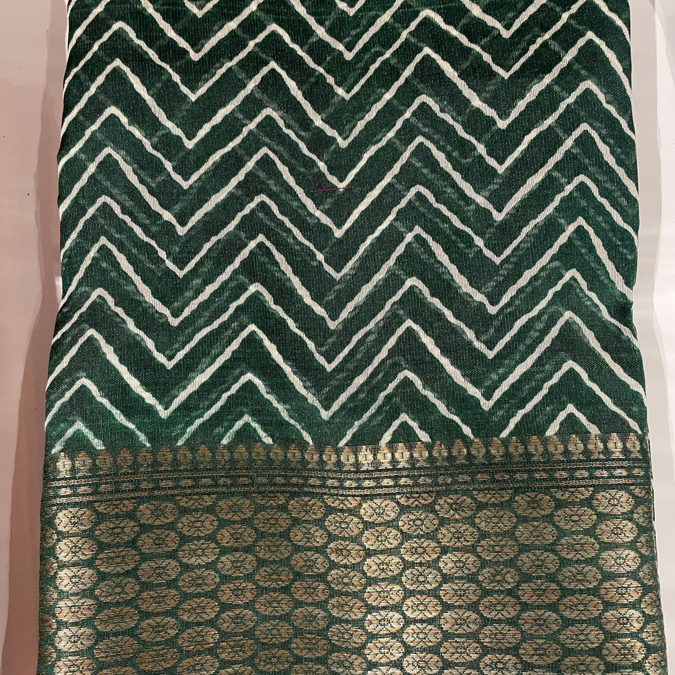 Green Organza Silk Saree with White Zig Zag Design & Floral Print Zari Pallu