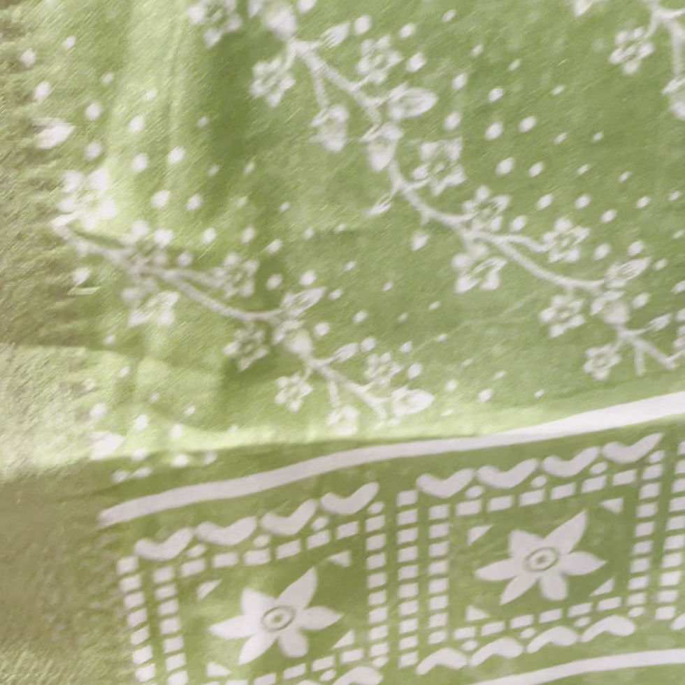 Parrot Green Organza Silk with All-Over Print & Zari Border