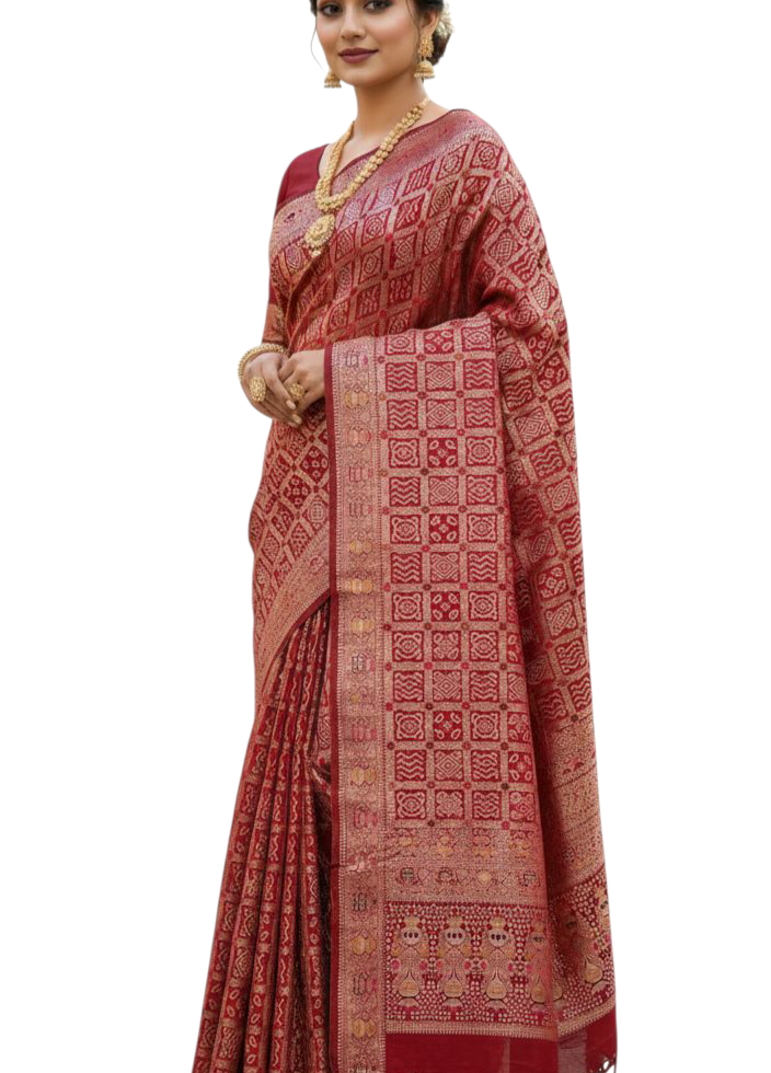 Red Color Garchola PatternBanarasi Silk Saree